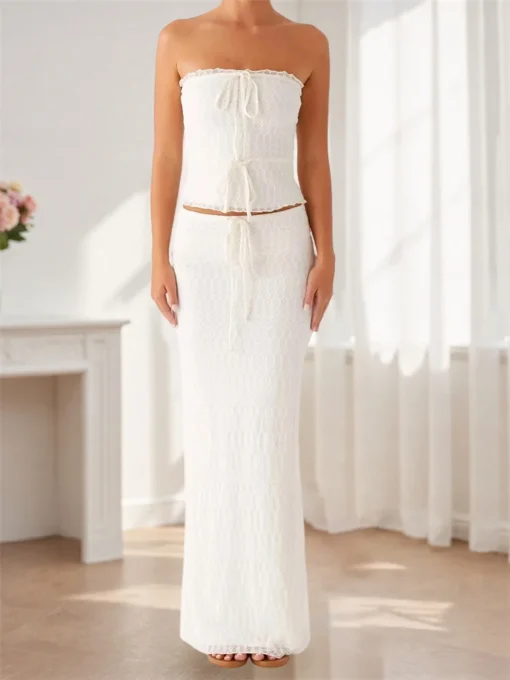 Women Y2K Knitted Long Dress Solid Color Strapless Bodycon Pencil Slit Tube Dress Summer Fall Sexy Elegant Chic Dresses Female