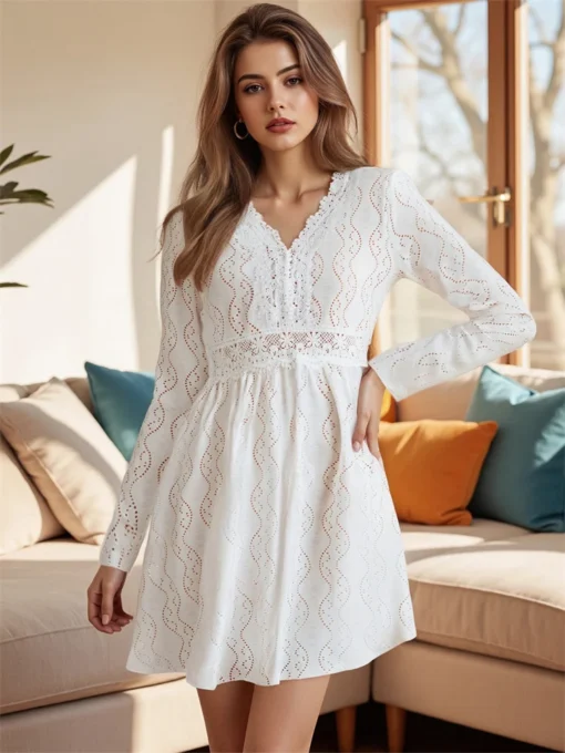 Women Summer Fall Dress Long Sleeve Flounce V Neck Tie-up Mini Dress Party Club Beach Sexy Y2K Dresses
