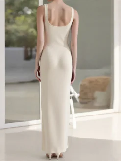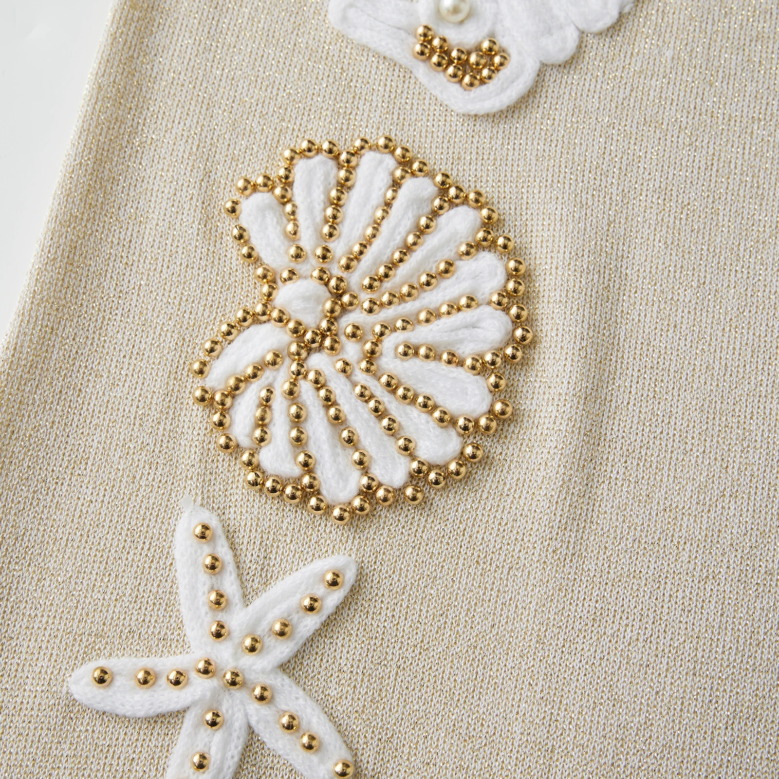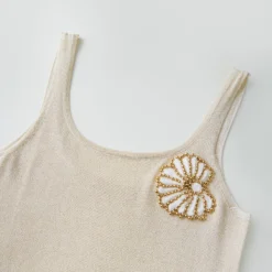 Women Knit Tank Dress Summer Shell Starfish Embroidery Sleeveless Bodycon Party Dress for Beach Club Streetwear Casual