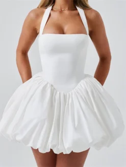 Women Halter Dress Summer Tie up Sleeveless Backless Corset Bubble Dress for Party Evening Club Streetwear